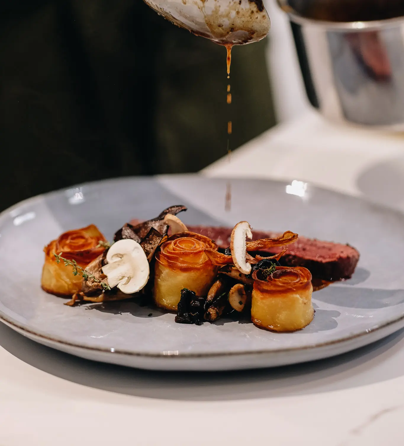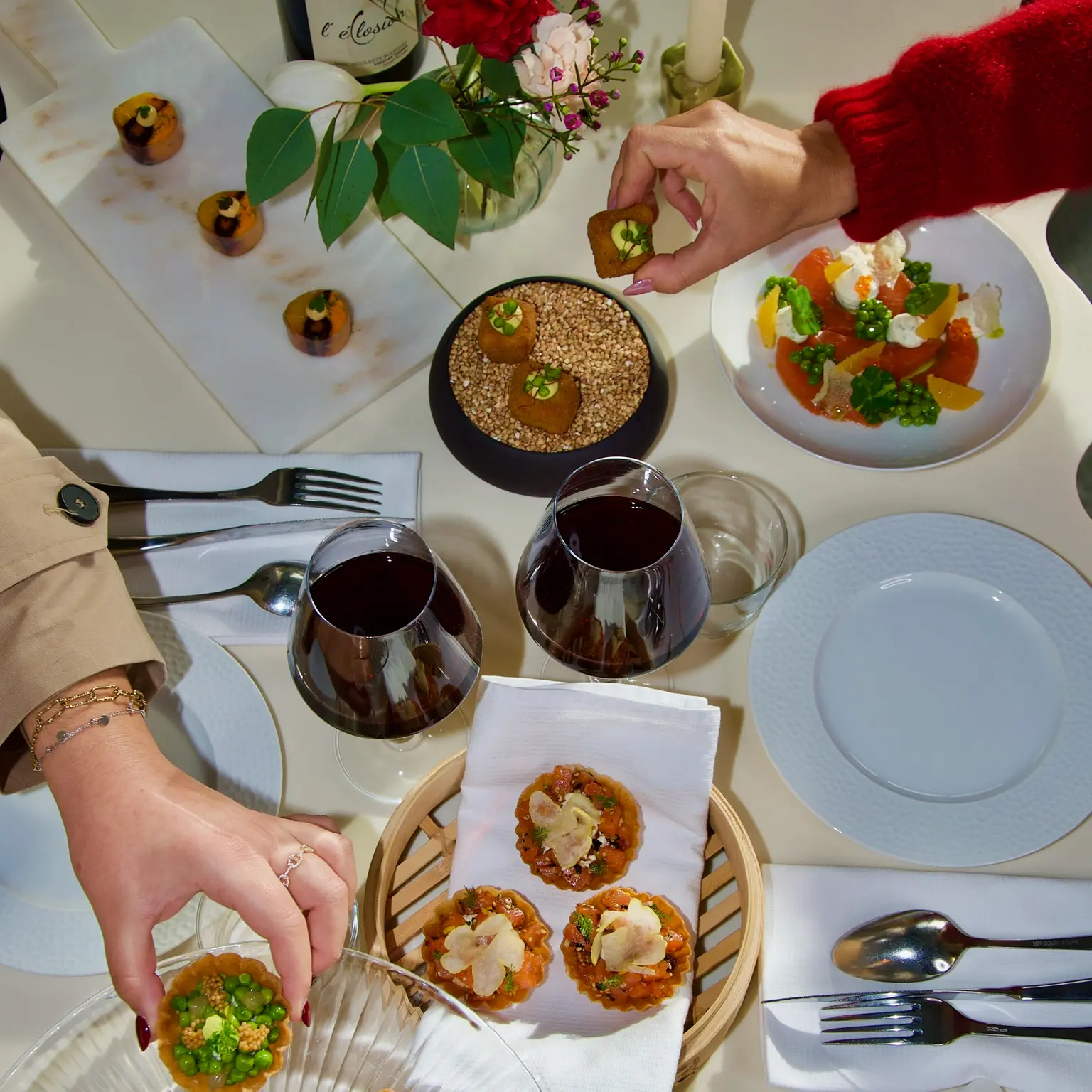 Nos menus évoluent au fil des saisons et des inspirations des chefs. Les plats présentés ici sont des exemples issus de précédents événements et ne reflètent pas nécessairement la carte du jour.